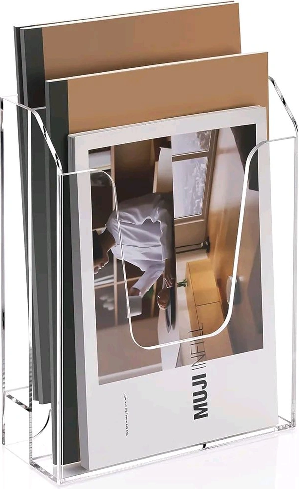 2 Tier Acrylic File Folder Holder, Vertical File Storage, Clear Desktop Organizer. 1 Count.