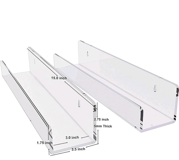 Crystal Clear Transparent Wall Mounted (2 Pack) Clear Acrylic Shelves.