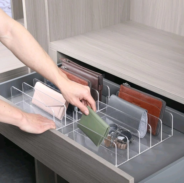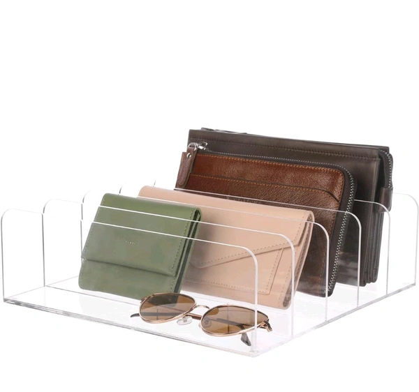 Acrylic Wallet and Small Purse Organizer with 5 Divided Sections, Clutch Tray Drawer Storage Organizer