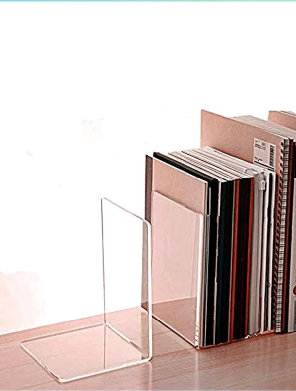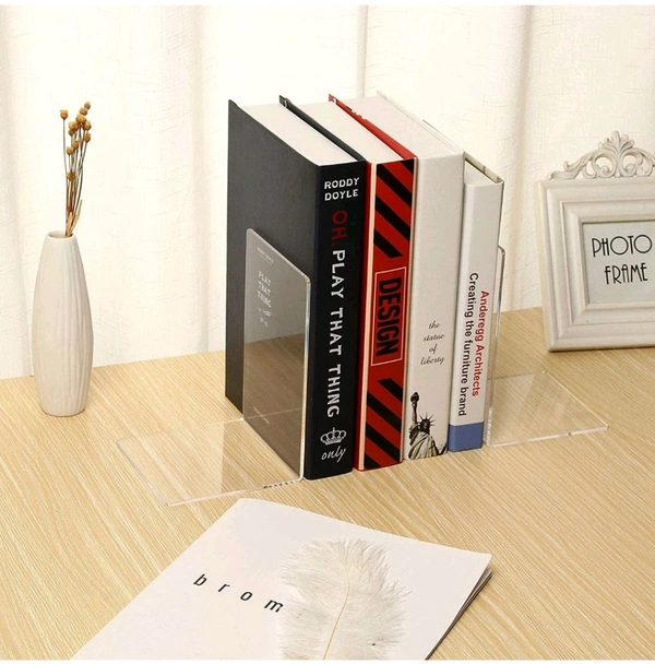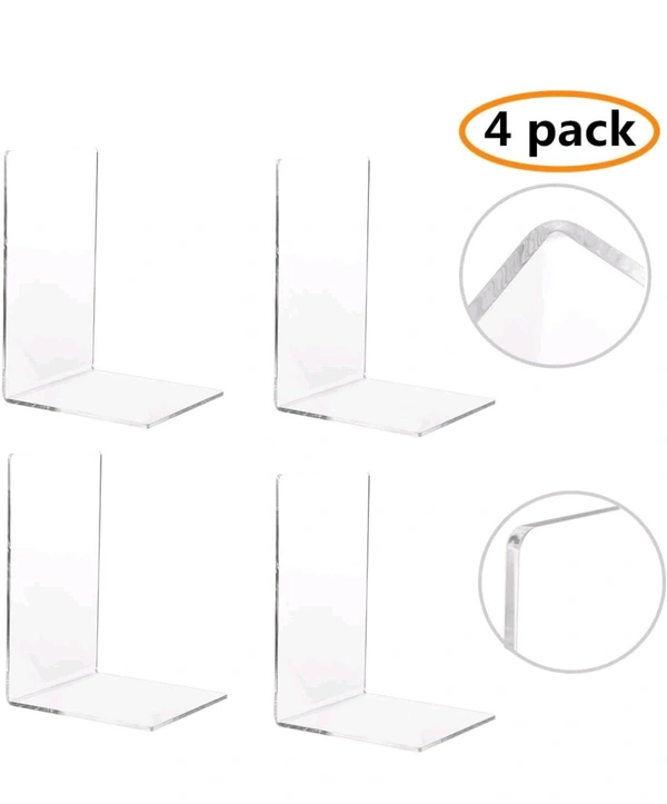 Pack of 4 Bookends,Clear Acrylic Bookends for Shelves,Heavy Duty Book Ends and Desktop Organizer, Book Stopper for Books