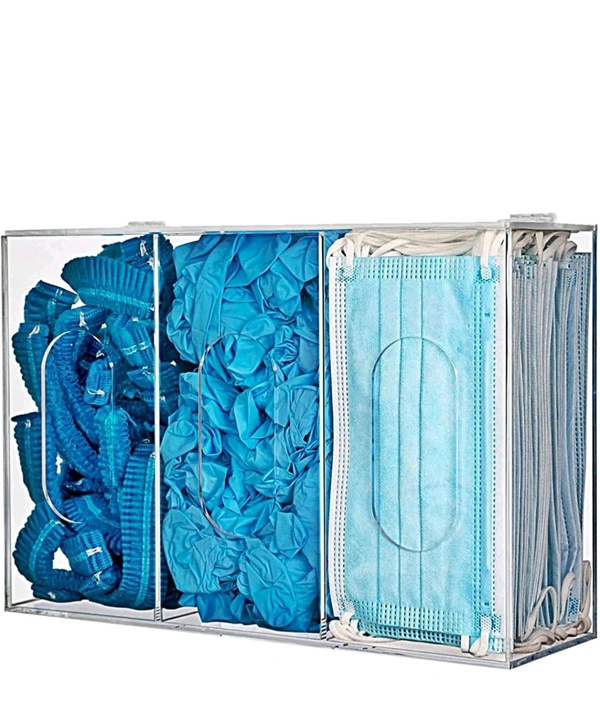 Triple Hygiene Acrylic Dispenser Station with a Lid - 3 Compartments.